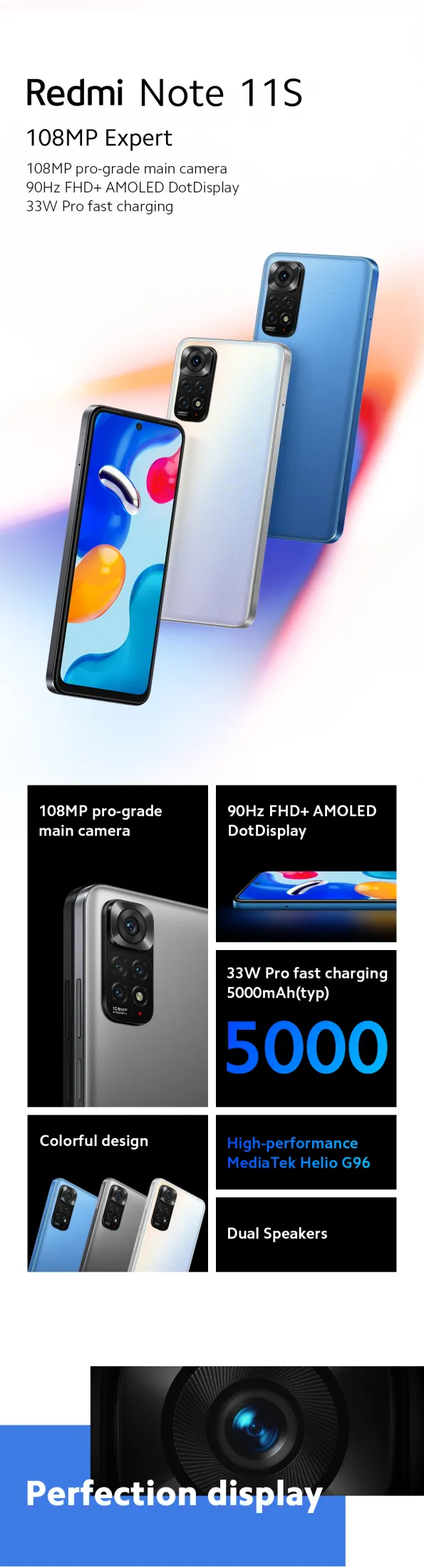 小米红米Note 11S 128GB ROM+6GB RAM/LTE版本/1年本地小米保修/全球版本(免费:钢化玻璃+后盖)