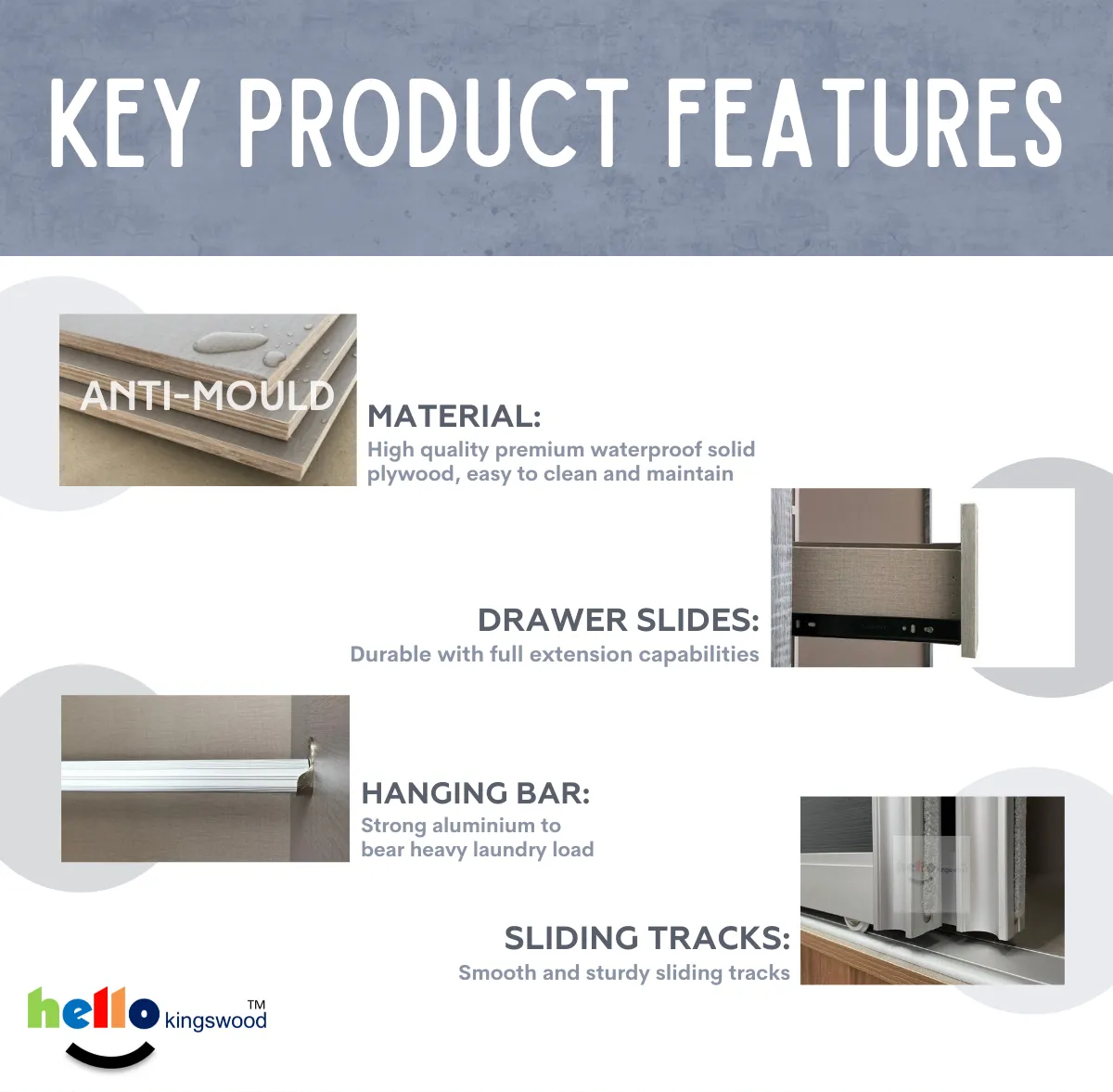12 months manufacturer warranty included Material: Solid Plywood Sturdy aluminium door frame Strong aluminium hanging bar Durable full extension drawer slides Width: 4, 4.5, 5, 5.5, 6ft Dimensions: H77.5" X D23.5" Frame Colour: Available in 9 trendy colours Scanik Door Design: Metallic Silver (Glass) + Metallic Silver Lines (Glass) Please PM us if you are looking for height 2.4m sliding wardrobes.